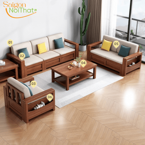 Bộ Bàn Ghế Gỗ Căm Xe Tự Nhiên Màu Nâu – SGL13