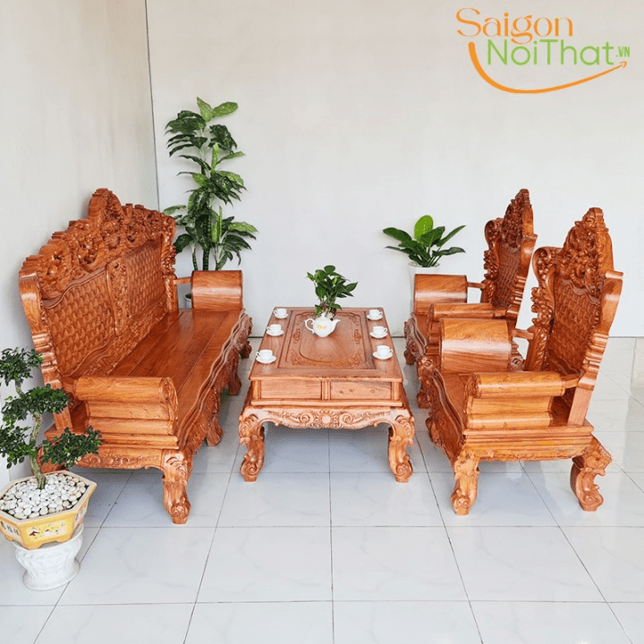 Bộ Bàn Ghế Gỗ Hương Đá Kiểu Hoàng Gia SGL11