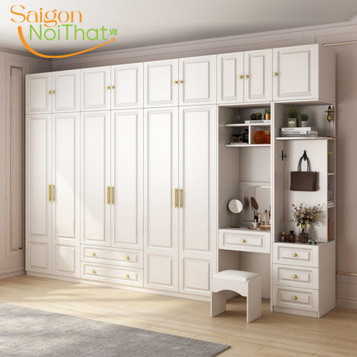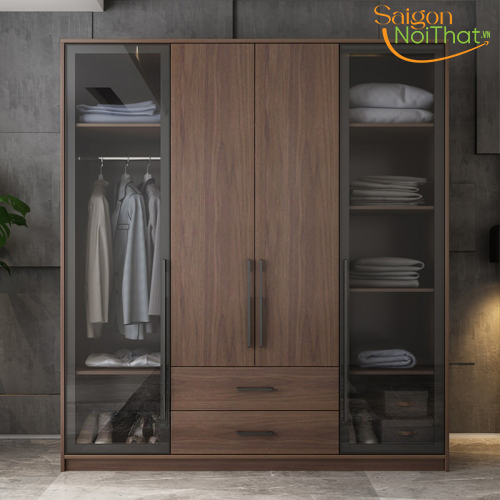 Sở hữu thiết kế tiện lợi gồm 3 buồng treo rộng rãi, 2 ngăn xếp gọn gàng, 1 hộc kéo âm chuyên dụng. Với khả năng tùy biến một cách linh hoạt sản phẩm được xem là một trong những mẫu nội thất phòng ngủ được xem là giải pháp tối ưu cho những gia đình có đông thành viên sử dụng, khách hàng có số lượng quần áo lớn để có thể giúp mọi người sắp xếp đồ dùng một cách gọn gàng nhất.