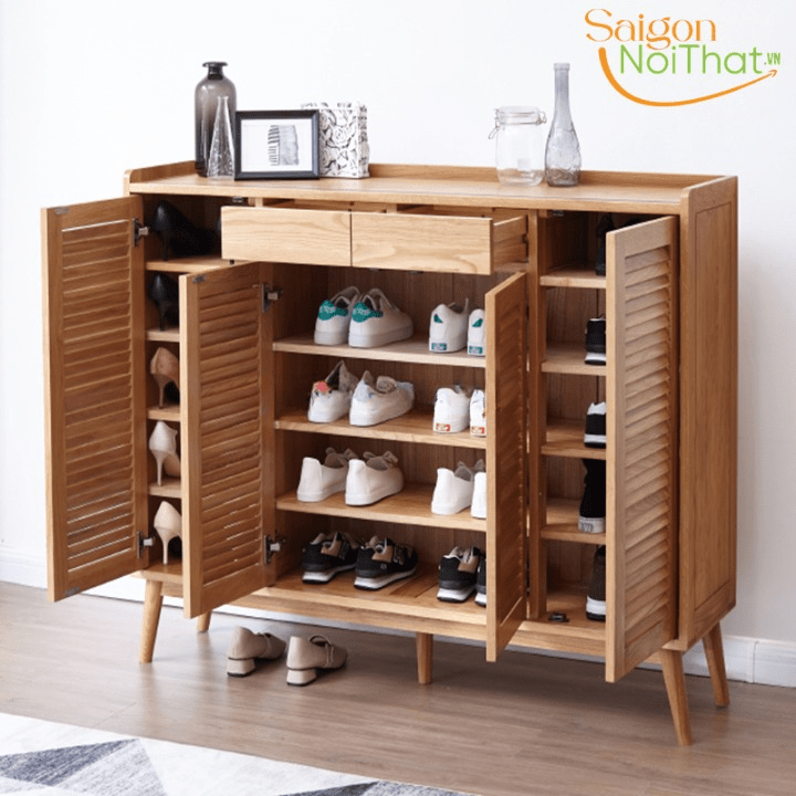 Tủ Giày Chân Vát Cánh Mở Màu Sồi STD10