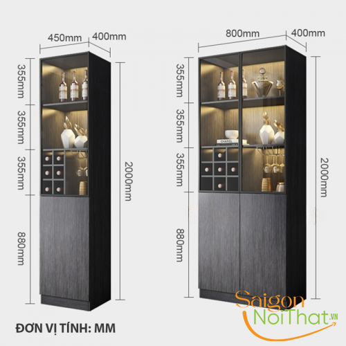 Tủ Rượu Phòng Khách 2 Cánh Màu Xám STR-01