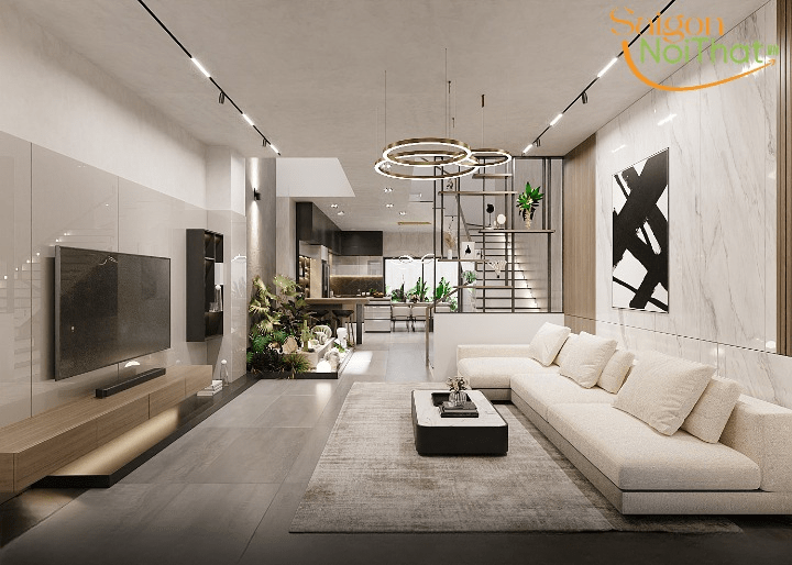 Các mẫu thiết kế nội thất phòng khách nhà phố sang trọng 2023
